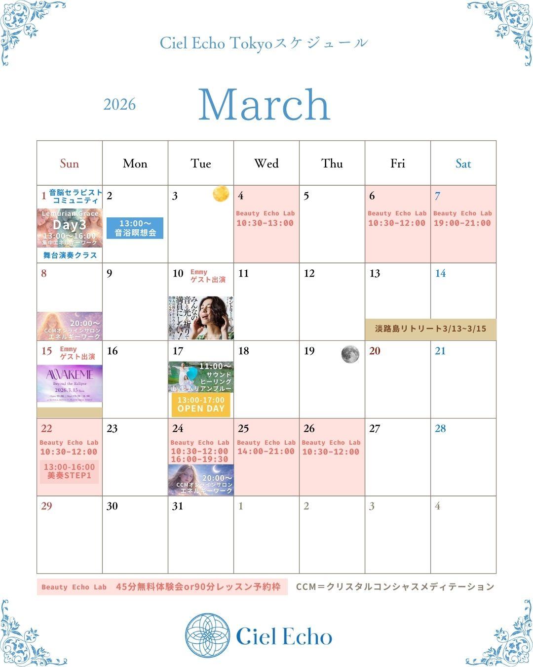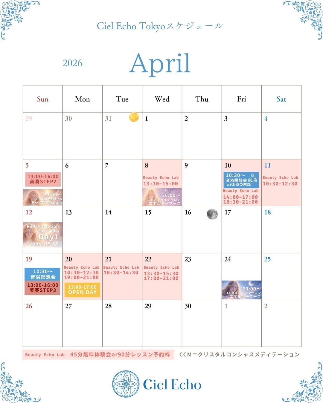 更新【3月4月スケジュール】Ciel Echo TOKYO